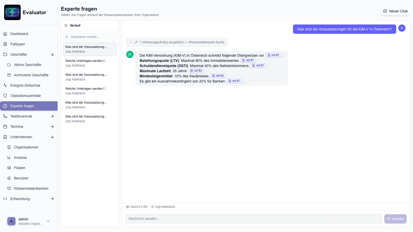Die für Bankumgebungen optimierte Version von Kredible KI hilft bei der automatisierten Entscheidungsvorbereitung und der regulatorischen Konformität.